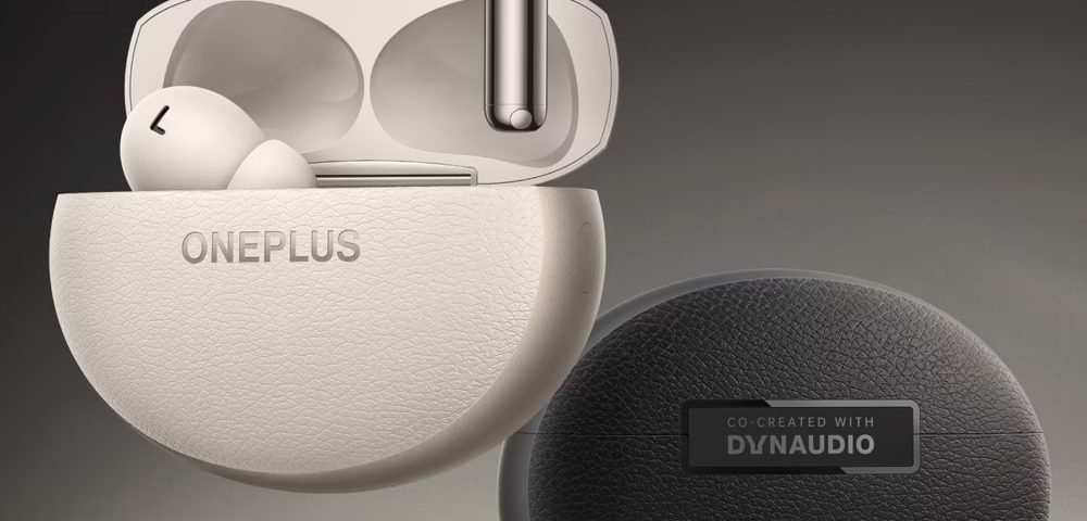 A OnePlus acabou de lançar os Buds Pro 3, com funções avançadas e design premium com um estojo de carregamento com textura de couro PU texturizado, nas cores Lunar Radiance (creme) e Midnight Opus (preto).