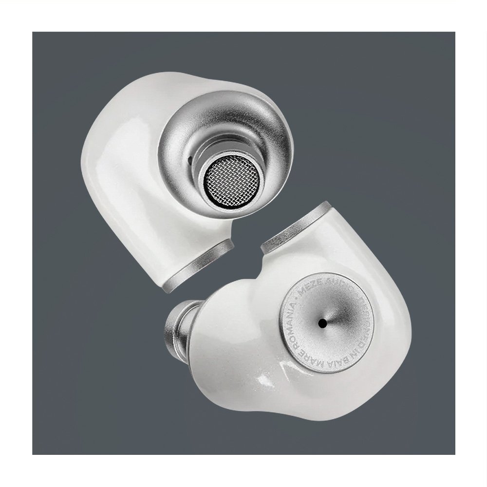 A estrutura do corpo do fone utiliza uma liga de zinco com um acabamento branco brilhante perolado, de excelente nível. Em termos de design, o ALBA é muito semelhante ao Meze ADVAR, com o mesmo sistema de ventilação traseira deste modelo.