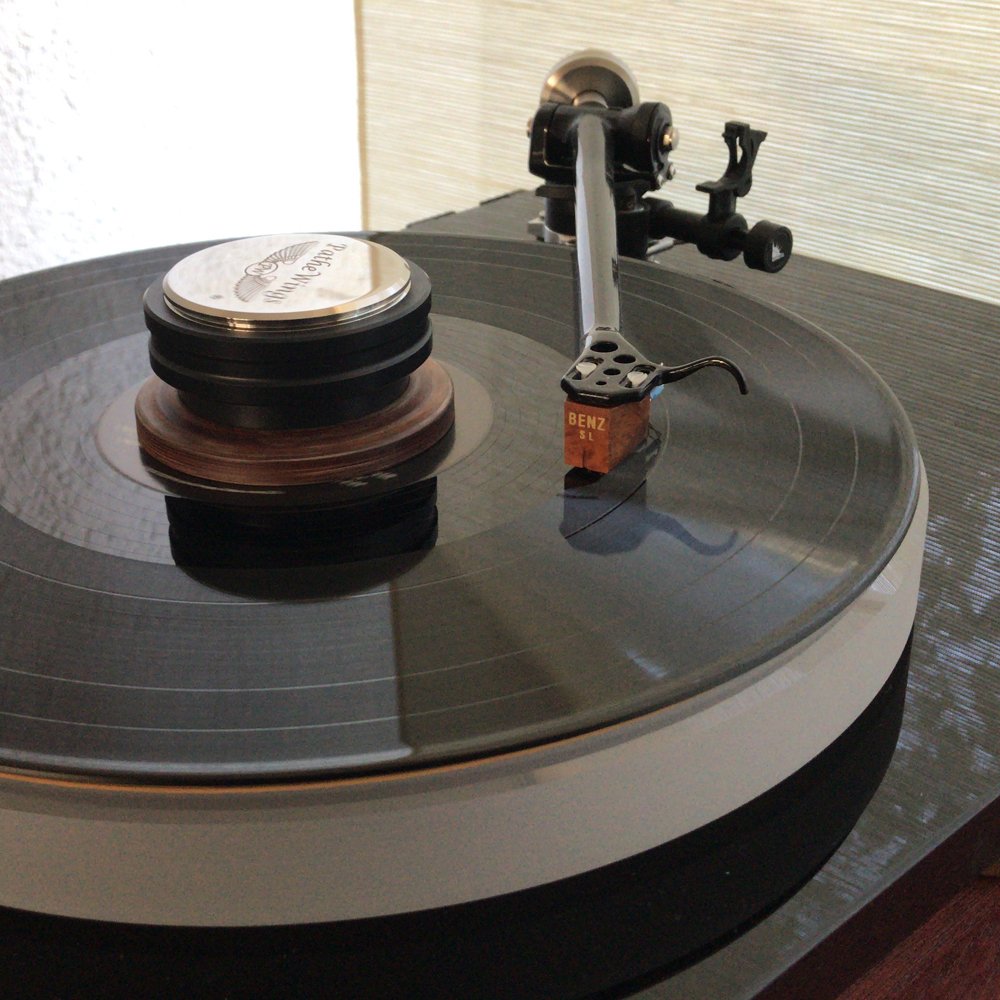Adquiri também um tapete de cortiça para o prato, juntamente com um peso de discos de 290 gramas da Pathe Wings, uma marca alemã. Essa leva de upgrades refinou o aparelho, fazendo com que o som se tornasse mais encorpado, e com a dinâmica mais abrangente.