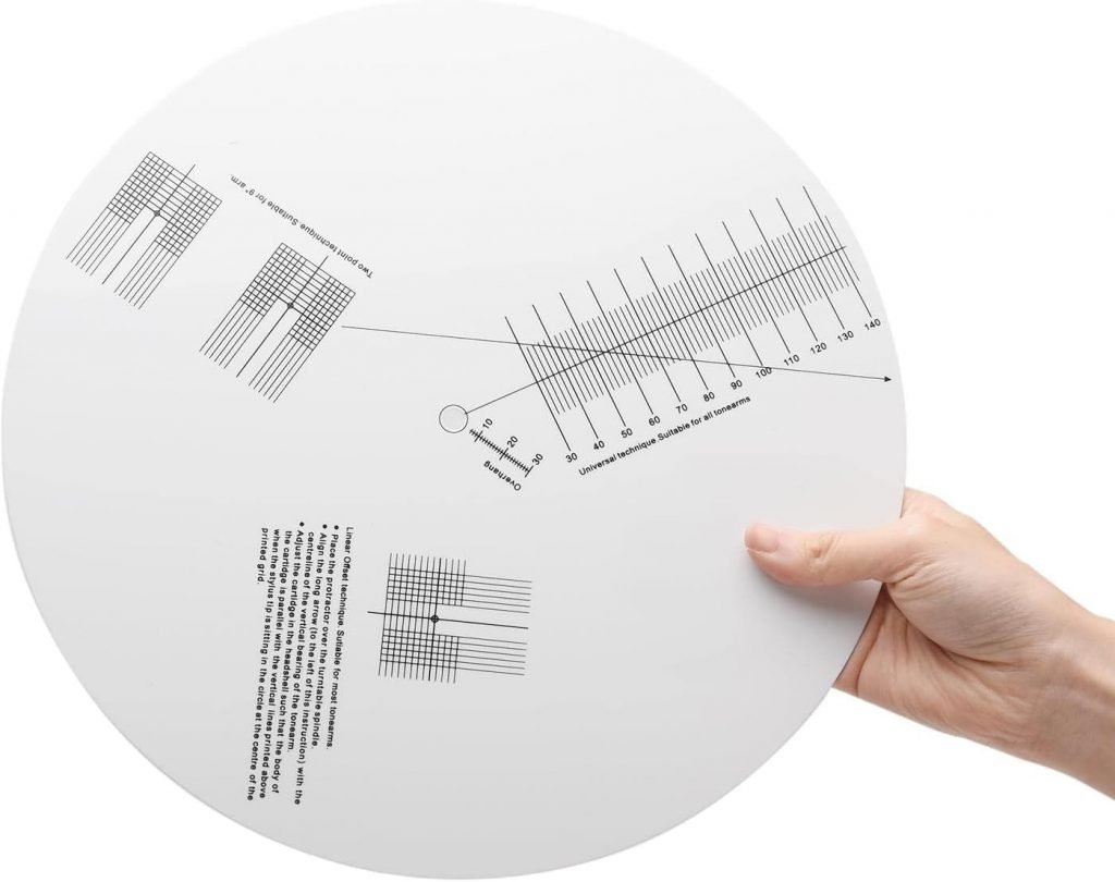O uso de um gabarito para o correto alinhamento da cápsula é primordial. Muitos toca-discos ou braços já vem com esse gabarito como acessório, porém é algo que não custa caro, principalmente se você está com um toca-discos e cápsula de bom nível.