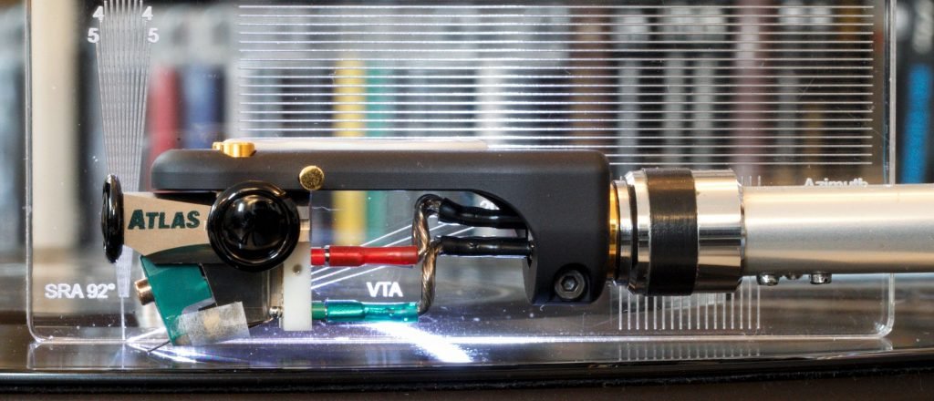 Fácil de entender se você olhar o braço do toca-discos de lado: se a traseira do braço for mais alta que a frente, o ângulo é maior. E qual é o ângulo ideal? Algo próximo do tubo do braço estar paralelo ao disco.