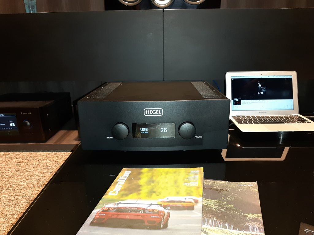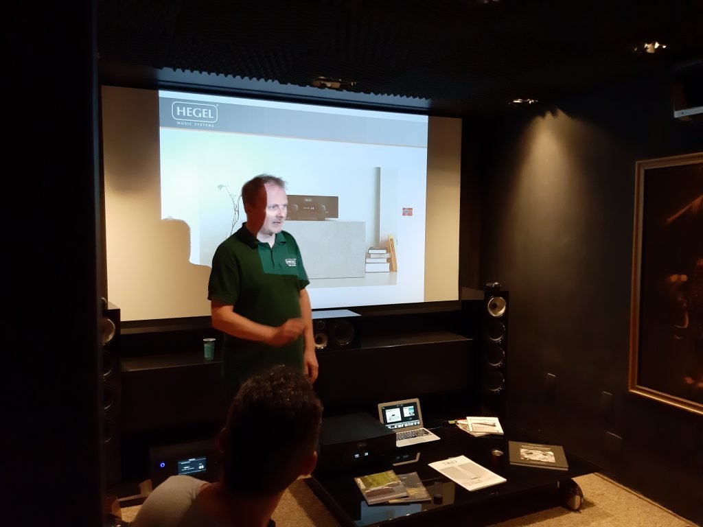 A demonstração do super integrado H590 ficou à cargo do Sr. Anders Ertzeid, Sales VP da Hegel, que apresentou as principais funções e as novas tecnologias empregadas no equipamento, como por exemplo a tecnologia de circuito SoundEngine 2, onde o sinal enviado pela fonte analógica ou digital é monitorado em tempo real. A entrada USB suporta DSD – pedido antigo dos proprietários do H360 – e a entrada Ethernet suporta os principais provedores de streaming de música com MQA. É possível transmitir músicas diretamente do celular com o AirPlay ou o DLNA (UPnP). Além disso, ele pode ser controlado remotamente pela Internet utilizando o gerenciamento de IP, além de possuir suporte interno para o Control4, dando interação total entre o aparelho e os mais modernos sistemas de automação residencial.