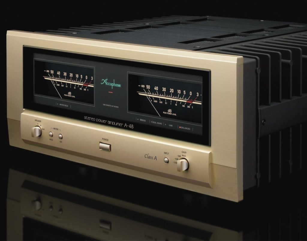 MOSFET, chegando à 360 W em 1 Ohm e com um fator de amortecimento de 800, com um banco de capacitores de 60.000 μF na fonte junto à um grande transformador toroidal, provendo uma relação sinal/ruído de 117 dB. O preço do power estéreo Accuphase A-48 ainda não foi divulgado.