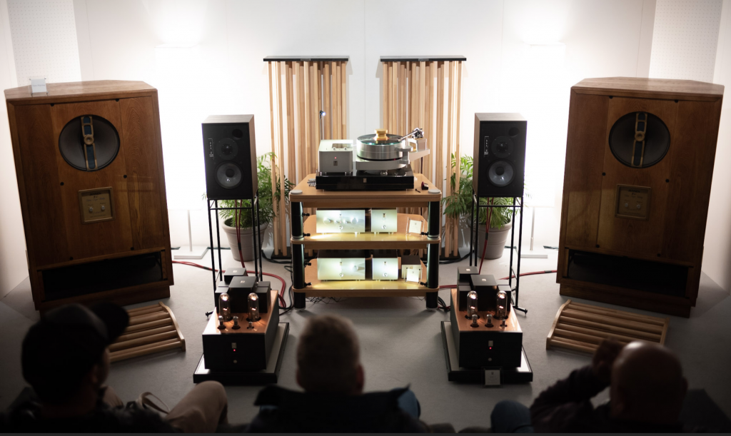 O som na pequena sala da WE estava atraente, mas o principal destaque é o renascimento da famosa marca que vem fabricando as famosas válvulas 300B, entre outras. Agora produz o integrado 91E usando um par daqueles triodos single ended. Também trouxe inovadoras caixas acústicas equipadas com drivers Heil AMT, uma espécie de ribbon enrugado como sanfona, em relevo curvo, que vibra por compressão e tem alto rendimento. Estavam mostrando todos esses processos e tecnologias. Muito interessante, a visita.