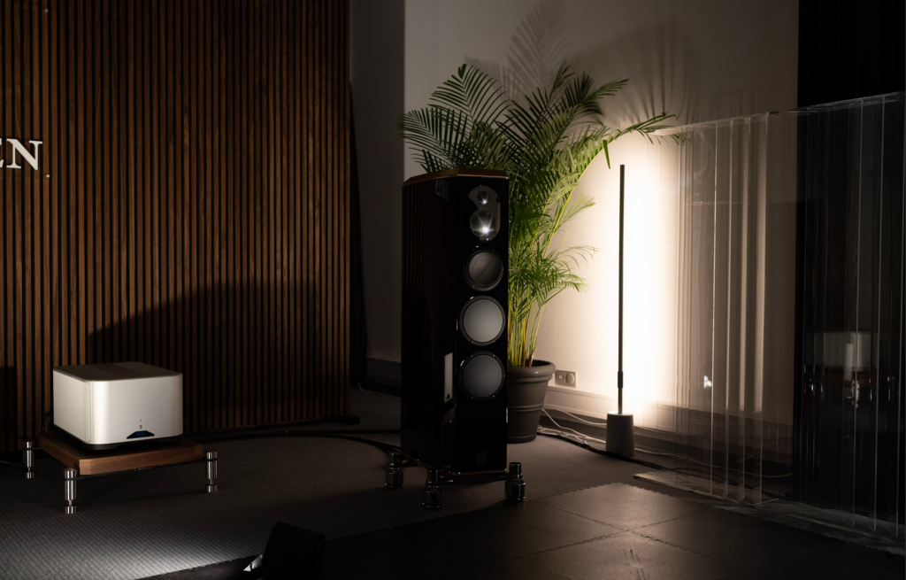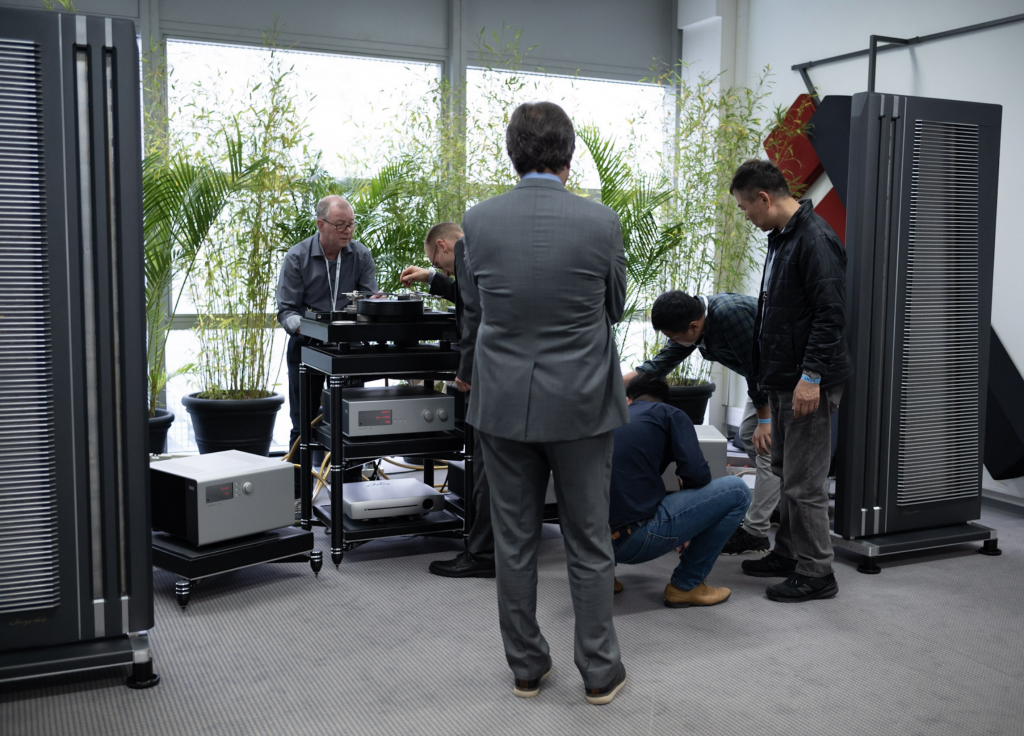 Desde 2012 reparando e fazendo upgrades em painéis da fabricante americana Apogee, a Clarisys desenvolveu em Cingapura modelos próprios na tecnologia ribbon e agora os fabrica no Vietnam. No show demonstrou o Auditorium, seu maior painel, alimentado pela família 700, topo de linha Soulution. Apesar do pobre tratamento acústico da sala, os painéis produzem um som gigante e de alto impacto, ajudados pela eletrônica suíça de alta qualidade e baixíssimo ruído, além de excelentes fontes. O toca-discos De Baer Topas 12/12 abrigava dois braços Onyx, um com cápsula moving coil Xquisite e outro com a ótica DS Audio Grand Master, mas ambas ligadas ao mesmo pré de phono Soulution 757. É mais um fabricante de ponta que fortalece a alternativa de cápsula ótica para phono high-end. O 757 é um ‘hub analógico’ e ainda aceita cápsulas MM e saída de cabeças de gravador de rolo. Também ótimo o som com o servidor Antipodes Oladra alimentando DAC Soulution.