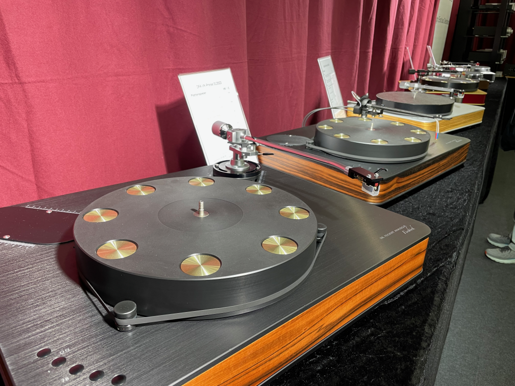 A Luxman também trouxe o PD-151 Mark II, a correia, que reedita um clássico da marca. O Thorens TD 124 DD, de tração direta, moderniza o clássico 124 movido a polia. Enquanto isso, a Audio-Technica criou um display no formato daqueles antigos baús de viagem, e a JBL apresentou o Modelo TT350 Classic, com cápsula da Audio-Technica.