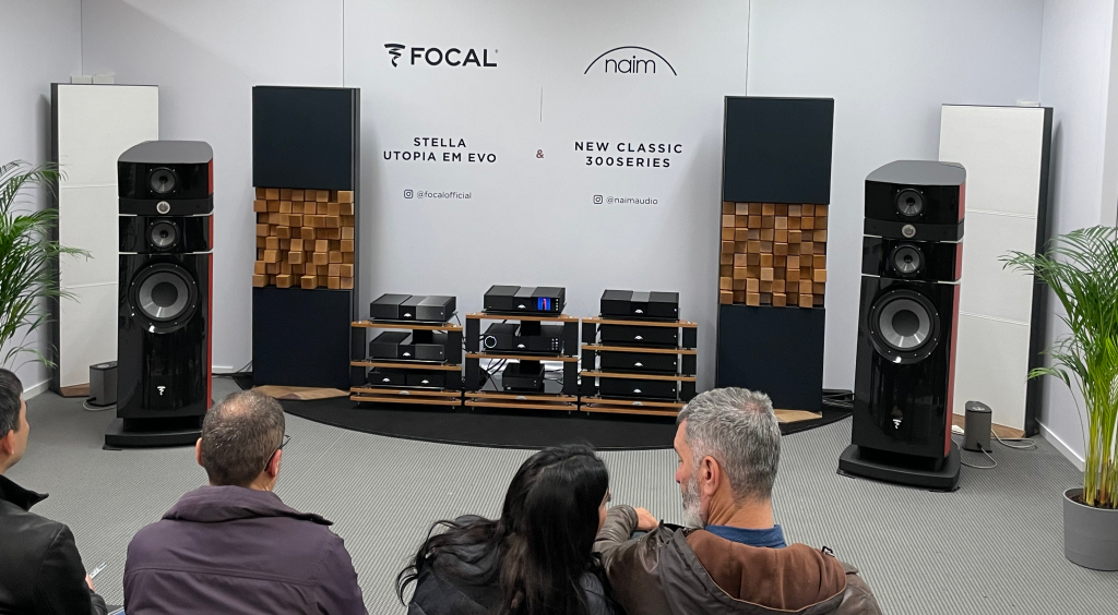 A inglesa Naim lançou neste evento os eletrônicos da 300 Series: streamer NSS 333, pré NAC 332, powers monobloco NAP 350, pré de phono NVC TT e sua fonte NPX TT. O streamer digital e a amplificação estavam tocando muito bem com caixas Stella Utopia EM, da marca irmã Focal. Por outro lado, não havia toca-discos ligado aos novos componentes phono. Informaram que os novos modelos são compatíveis com ‘power supplies’ de séries anteriores. Para upgrades, sugerimos que o cliente Naim confirme antes tais compatibilidades.