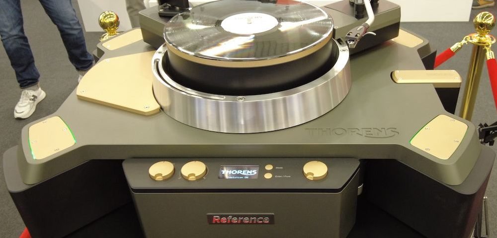 A célebre fabricante de toca-discos alemã Thorens, completando 140 anos de sua fundação, mostrou a nova versão de seu célebre modelo Reference de toca-discos. O Reference é tração por correia, com velocidade controlada por quartzo de “ultra precisão”, vem com um braço TP160 de 12 polegadas e um braço Thiele TA01 de alta precisão. O maior diferencial dele está no sistema anti-vibração – desenvolvido com a alemã Seismion – que usa sensores de aceleração piezoelétricos, em um sistema ativo que reduz as vibrações a menos de 1%. Os preços ainda não foram divulgados.