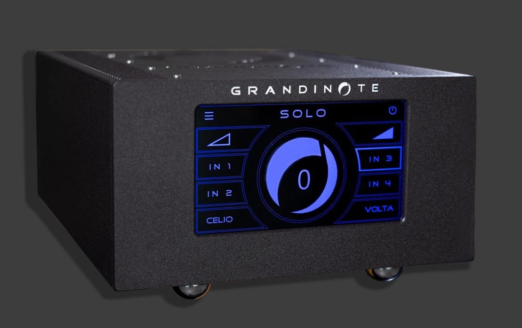 A italiana Grandinote, que tem uma linha de amplificação, caixas e cabos, apresentou seu novo amplificador integrado, o modelo Solo. Fruto de um longo período de desenvolvimento, ele provê 60W por canal em classe A estado sólido zero feedback, e com estágios com acoplamento direto. Ele tem entradas RCA e XLR, resposta de frequência de 2Hz a 240kHz, e um peso de 34kg com 20cm de altura! Com um display frontal de 9 polegadas, que também traz funções como VU e analisador de espectro, os preços do Solo oscilam entre 12.240 e 16.320 euros, dependendo das placas de expansão de DAC e de Streamer.