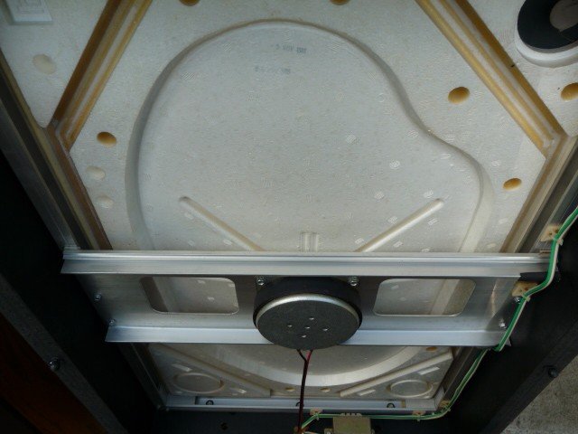 A hora que você consegue fazer movimentar todo esse diafragma de graves, o som racha pois ele não é de ‘livre’ movimento, sendo travado nos quatro lados. E o fato é que a cola que une o excitador ao diafragma vai secando com o tempo, rachando com a vibração, e soltando – e o reparo desse contato da bobina do excitador com a superfície de isopor, é um bocado complicado de ser refeito, de ser consertado, sendo esse um dos motivos da escassez desse tipo de caixas hoje no mercado de usados, em pleno funcionamento.