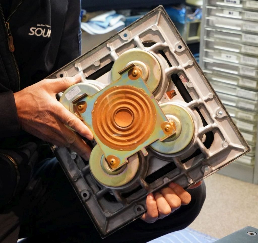 A ideia da empresa era parte centrada no diafragma ser plano e quadrado, e parte no sistemas de quatro ‘excitadores’ traseiros desse diafragma – em vez da tradicional bobina e conjunto magnético únicos. Os quatro excitadores fariam uma distribuição mais uniforme da vibração por todo o diafragma. E o dito diafragma plano – feito, aliás, em forma de um sanduíche de colméia de alumínio para uma dispersão melhor e menor distorção (devido ao formato e à rigidez e leveza do material) – eliminava a coloração criada pelo som refletido dentro de um cone comum (como acontece em uma corneta).