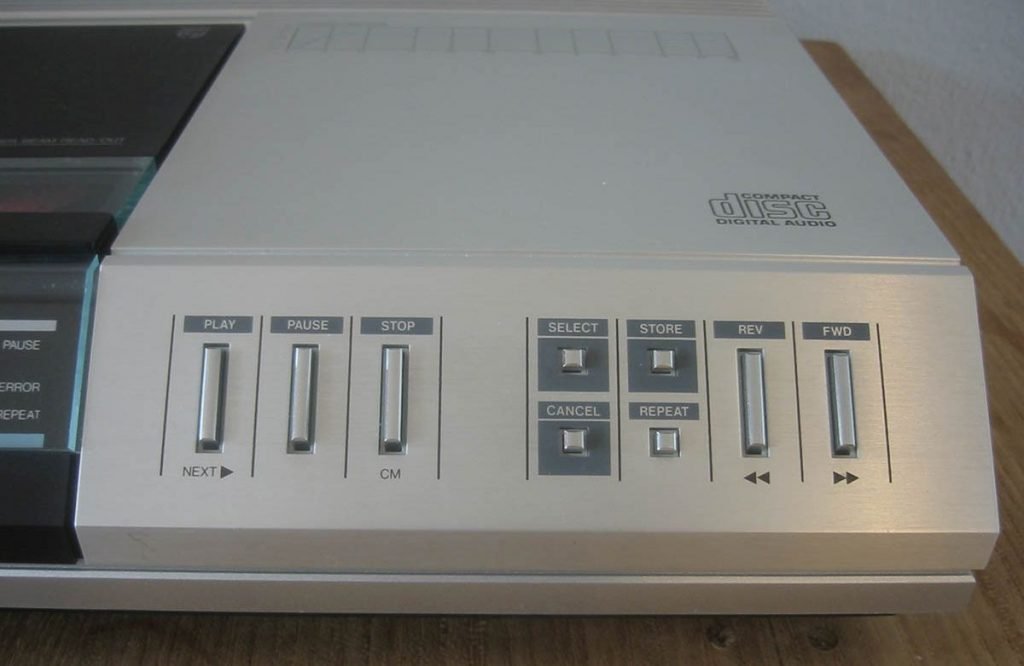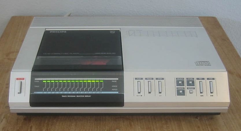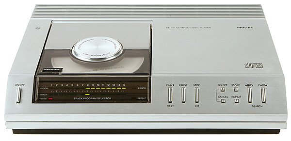 Em outubro de 1982, o primeiro disco de CD foi prensado, e no mês seguinte já veio o primeiro aparelho de CD – o primeiro CD-Player da Philips, o primeiro comercialmente disponível ao mercado europeu – chamado de CD100, que teve curta duração no mercado, e um preço muito alto.