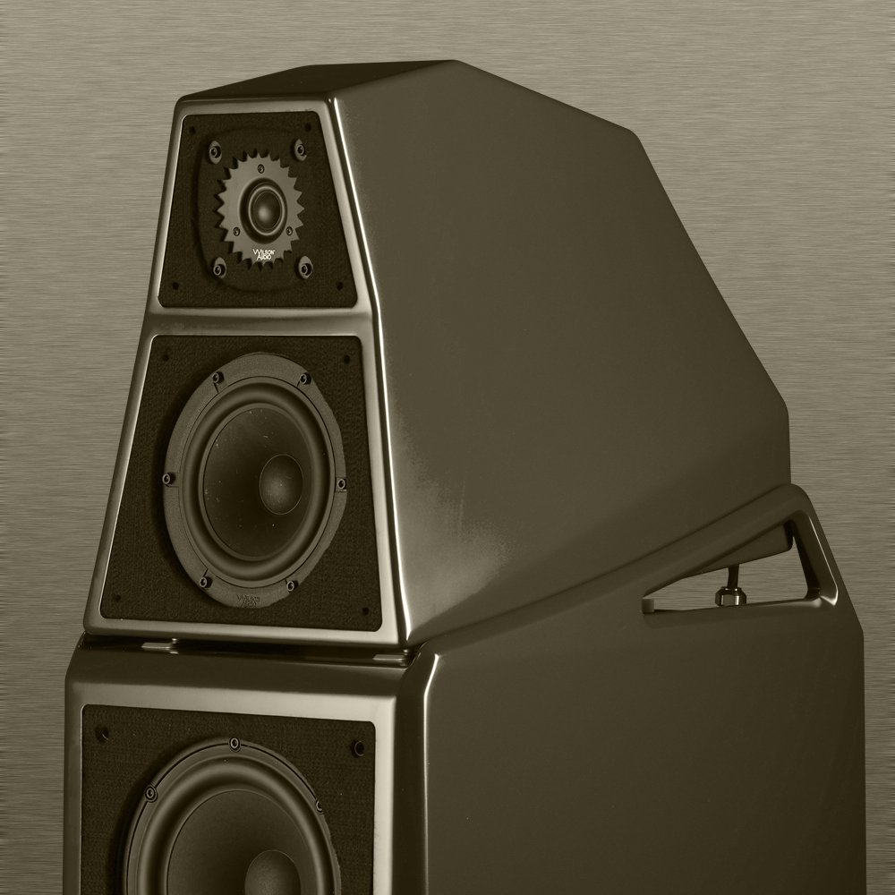 tweeter são os mesmos utilizados na WAMM. O gabinete foi construído com o Material S (proprietário da Wilson Audio).