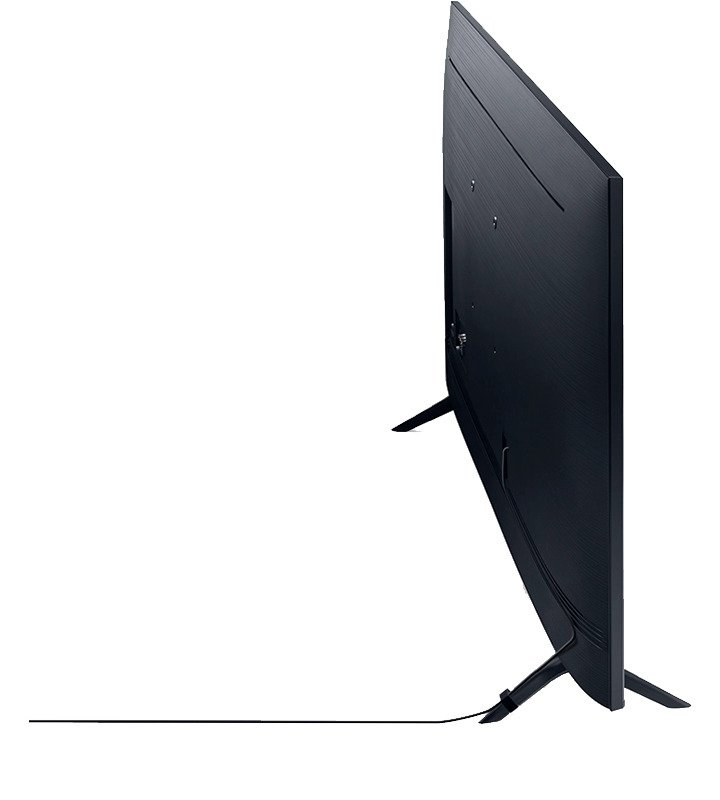 A linha Crystal TU8000 possui bordas realmente muito finas, chamadas pelo fabricante de Bordas Infinitas. Muito bonitas e elegantes, combinam com qualquer ambiente e dão um ar de alta tecnologia e sofisticação ao produto. A TV também é muito fina e possui 2 pés em formato de Y. Os pés estão posicionados próximos às extremidades do painel, o que exige um móvel ou bancada de dimensões consideráveis para acomodá-la. A TV possui furações em sua parte posterior, permitindo fixação em paredes. Os pés possuem canaletas que permitem organizar os cabos e escondê-los, deixando o visual limpo e funcional.