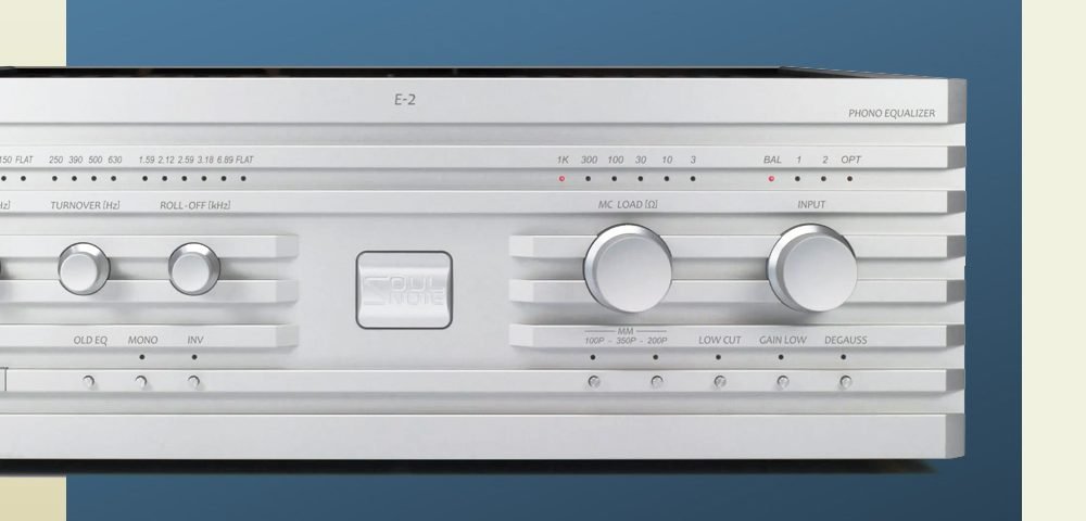 Antes de descrever o Soulnote E-2, é preciso apresentar o seu conceito de pré de phono, para se atingir os resultados imaginados pelo engenheiro Kato para esse produto: “Geralmente, para melhorar a relação sinal/ruído, é de bom senso reduzir N (ruído) porque S (sinal) é de natureza fixa. No entanto, ao projetar um pré de phono, descobri que o valor medido e a relação sinal-ruído audível tornam-se exatamente o oposto a partir de um certo ponto. Os phonos precisam amplificar significativamente os sinais mínimos. Ao amplificar com dois estágios de transistores, é melhor amplificar o máximo possível no primeiro estágio para reduzir o ruído, pois reduzir o ganho do segundo estágio reduz a quantidade de ruído do transistor do primeiro estágio, o qual é amplificado no segundo estágio. Isso é o senso comum em circuitos de transistor. Mas! O oposto é verdadeiro no que diz respeito a música. Diminuir o ganho do primeiro estágio melhora significativamente o frescor do som e, inversamente, parece que a SN melhorou. Na verdade, quando a relação sinal-ruído é realmente medida, os números pioram. Ao reduzir o ganho do primeiro estágio, que é a carga da cápsula, o efeito Miller é reduzido e as características de alta-frequência, ou desempenho de resposta transitória (desempenho dinâmico), são melhorados. Em outras palavras, o desempenho estático é mantido o mais baixo possível. E o desempenho dinâmico é a prioridade, proporcionando uma reprodução musical muito mais agradável”.