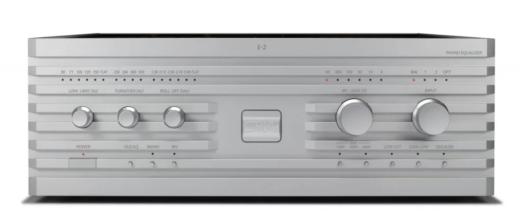 No seu interior, o E-2 possui um imponente transformador toroidal de 400 VA bem na frente, totalmente isolado. O E-2 é totalmente balanceado, com os circuitos de entrada direito e esquerdo completamente separados. Com esse grau de isolamento é que o fabricante diz ser possível fornecer até 72 dB de ganho para cápsulas MC e 52 dB para cápsulas MM.