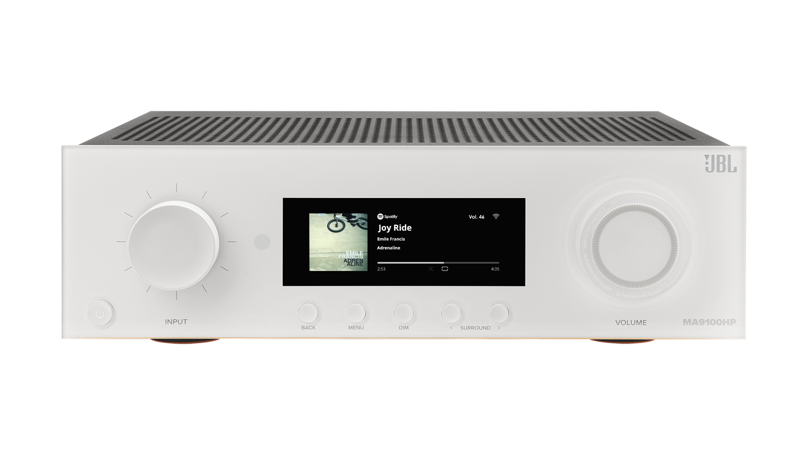 O JBL MA9100HP é o topo da linha Modern Audio de receivers da marca, focado em unir estética amigável, interface intuitiva e performance sonora convincente. São nove canais de amplificação Classe D, com suporte a Dolby Atmos e DTS:X para formar layouts 5.1.4 ou 7.1.2, em um chassi com display colorido de alta legibilidade e frente ‘despoluída’ – inclusive com iluminação sob o painel em LED para compor um visual mais arrojado. A proposta é seduzir tanto entusiastas (pelo som e recursos) quanto quem quer um AVR menos intimidante no dia a dia.