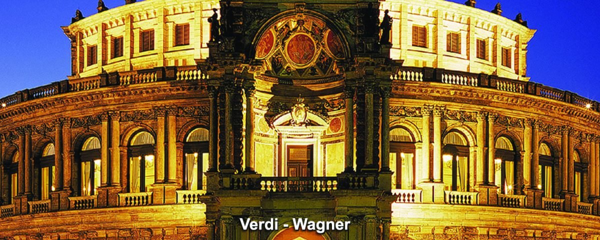 Giuseppe Verdi e Richard Wagner foram, e ainda são, no imaginário dos apreciadores, dois gigantes, cada um sendo o supremo representante de sua escola de ópera, e de seu País, em sua época. Novamente, em vez de um CD para os dois compositores, daria para fazer um CD de cada um deles e ainda deixar de fora exemplos ou trechos de obras significativas. Verdi, por exemplo, compôs quase 30 óperas, sendo que é possível facilmente qualquer fã do gênero enumerar pelo menos 15 títulos que são, até hoje, encenados com alguma frequência. Wagner sempre será lembrado por seu extenso, complexo, denso e inovador Ciclo do Anel do Nibelungo, composto de quatro óperas que, juntas, chegam a quase 15 horas de música – e que são, com frequência, encenadas em sua continuidade, ao longo de alguns dias, para a glória dos adoradores de ópera.