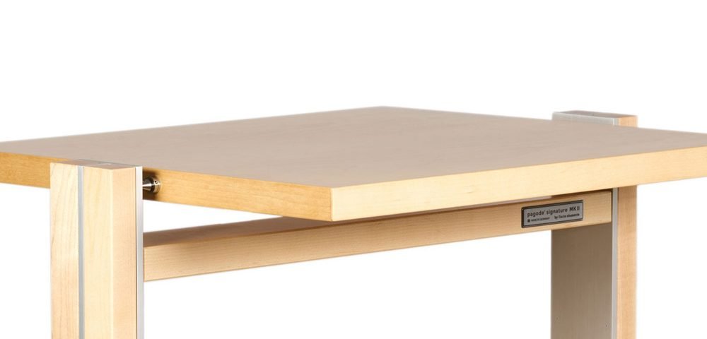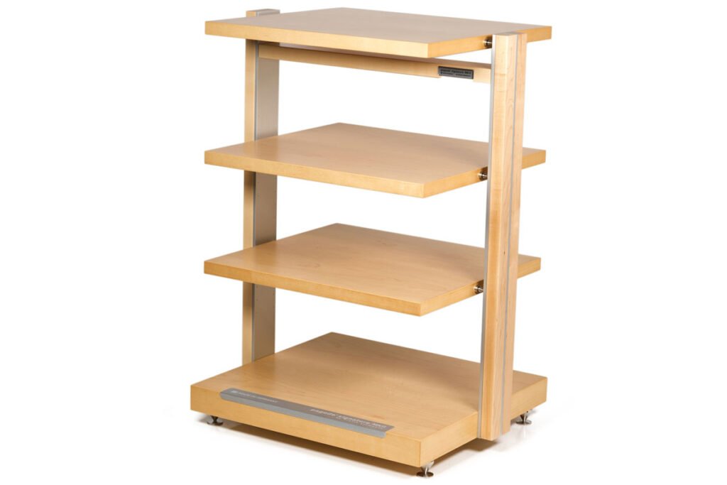 O ‘pequeno’ rack elimina as elaboradas prateleiras de rolamentos de cerâmica e a tecnologia de ressonador proprietária, mas mantém a estrutura básica com a construção com pilares de alumínio em perfil T, e prateleiras com núcleo ultraleve em colmeia, que garantem amortecimento direcionado e dissipação em vez de armazenamento descontrolado de energia vibratória – mantendo a filosofia do fabricante. O acoplamento rígido das prateleiras individuais por meio de pontas laterais, segue a mesma abordagem, continuando no caráter sonoro aberto e controlado típico da empresa.