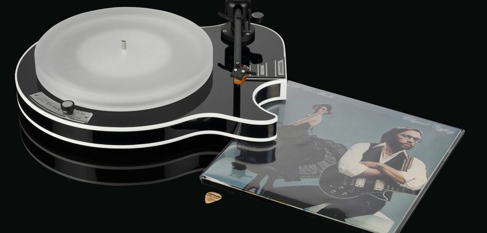 O toca-discos Celebrity incorpora uma base especial usinada em CNC com o formato de uma guitarra elétrica, resultado de uma colaboração direta com o artista. Essa estrutura proporciona alta rigidez e excelente amortecimento de vibrações, essenciais para uma reprodução analógica precisa.