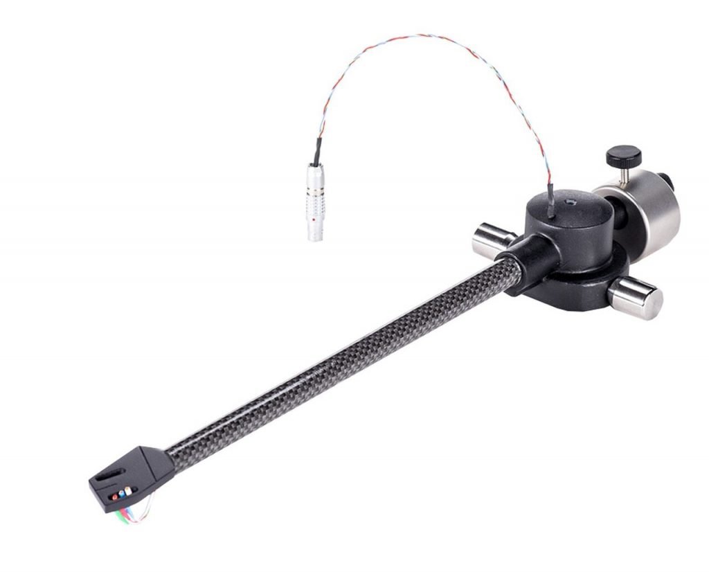 Existem braços de todos os materiais imagináveis, tamanhos e topologias. Temos braços de alumínio, fibra de carbono, metais exóticos, madeiras especiais – e tamanhos diferentes como 9 polegadas (os mais comuns), 9.5, 10, 10.5 e 12 polegadas. Temos projetos de alguns fabricantes que desenvolveram seus braços tangenciais (para uma leitura do sulco do disco mais precisa). E cada um defende seu “peixe”, buscando mostrar que o trilhamento do seu braço é mais preciso.
