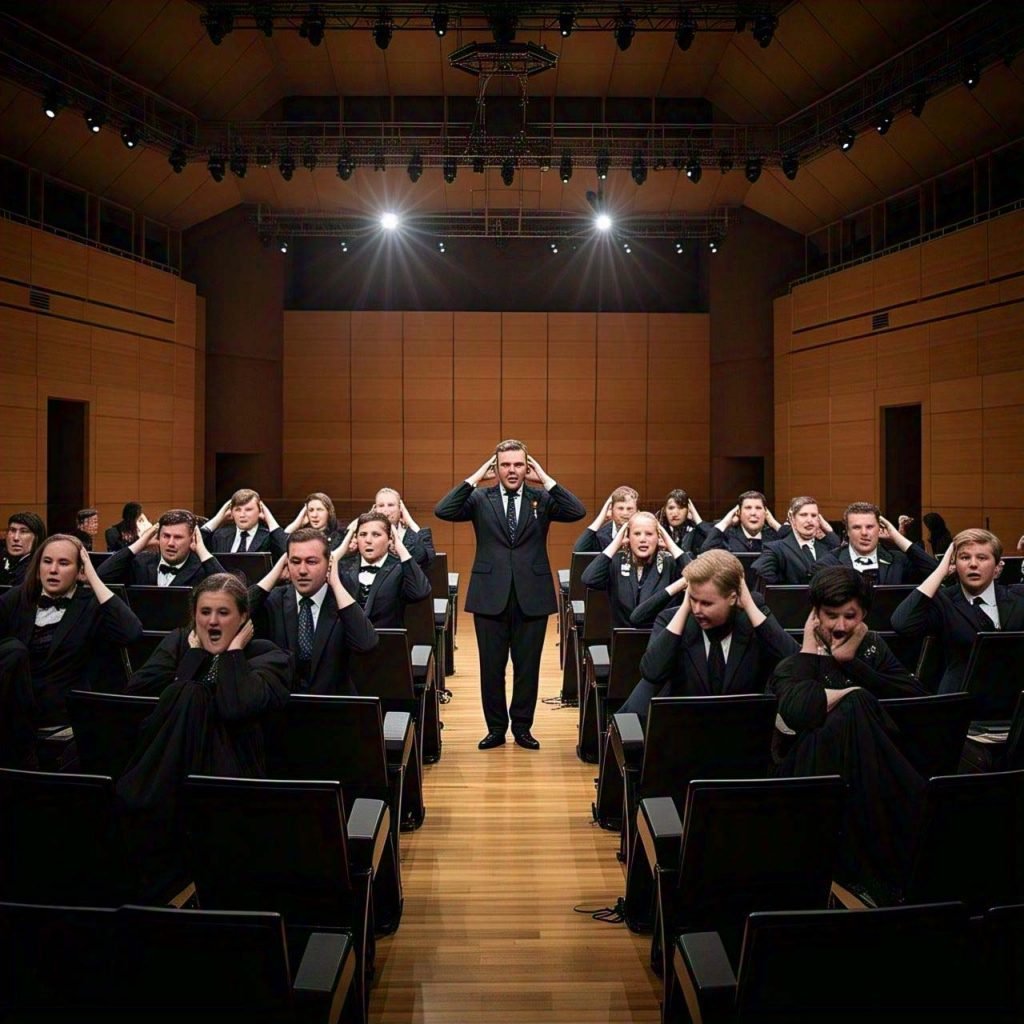Em uma versão dessa patacoada, que eu mesmo presenciei, a pessoa saia da sala de concerto dizendo que “a orquestra está soando muito baixo”, estaria com volume de som baixo…rs! Não, é ele quem está ouvindo música muito alto. O mundo não tem que se adaptar à pessoa, e sim a pessoa se adaptar ao mundo – quem se dedica a querer ir na contramão disso, geralmente se frustra.