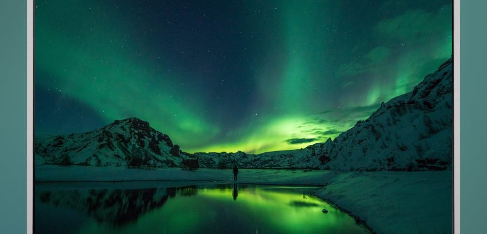 A QN90A possui o modo ambiente 4.0. Ao desligar a TV, ao invés de uma tela preta, você pode ativar o modo ambiente fazendo a TV combinar com o seu espaço através de imagens e texturas pré-definidas, ou tirando uma foto da parede de sua sala e a TV irá se adequar à sua decoração.