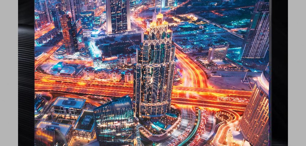 O modelo também vem equipado com um sistema de som 2.1 Onkyo com 60W e suporte a Dolby Atmos, trazendo um sistema de áudio imersivo. Dolby Atmos transporta os usuários para as cenas com um som maior e mais abrangente, que enche a sala e flui ao redor dos espectadores, além de graves envolventes através de um subwoofer dedicado instalado na parte de trás da TV.