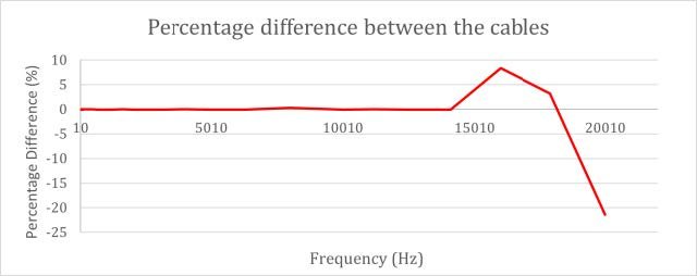 Neste estudo, procuramos entender alguns motivos pelos quais as pessoas ouvem diferenças entre cabos de interligação fabricados com materiais diferentes. Existe uma pequena variação numérica entre os dois sinais quando medidos com os dois cabos. Dividindo as frequências senoidais de 20 Hz a 20 kHz em 41 vezes, para frequências acima de 14 kHz a variação foi de até 21%. Para um segmento musical de 0,681 segundos, com frequências dominantes nas frequências médias, de 300 a 2000 Hz, a variação entre os cabos foi de aproximadamente 0,12%. Auditivamente, esse trecho apresenta variação mínima, mas vale ressaltar que uma reprodução mais precisa das altas frequências facilita uma melhor visualização dos instrumentos musicais na audição estéreo, recurso cobiçado pelos sistemas de áudio de alta qualidade (HEA).
