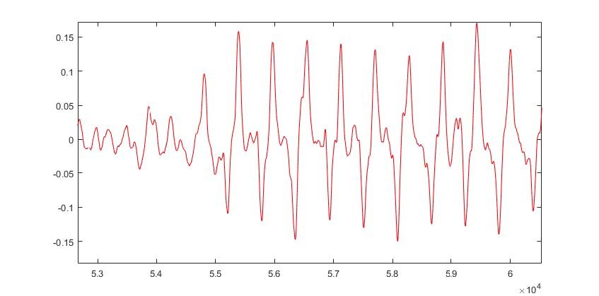 Para realizar uma análise do áudio, tentamos sincronizar os sinais gravados com cabos Lumix e Ataudio utilizando o software MATLAB. Porém, foi detectado um desvio na frequência de amostragem do sinal, inviabilizando a sincronização das formas de onda para a gravação de 20 kHz, apesar de sua taxa de amostragem de 192 kHz.