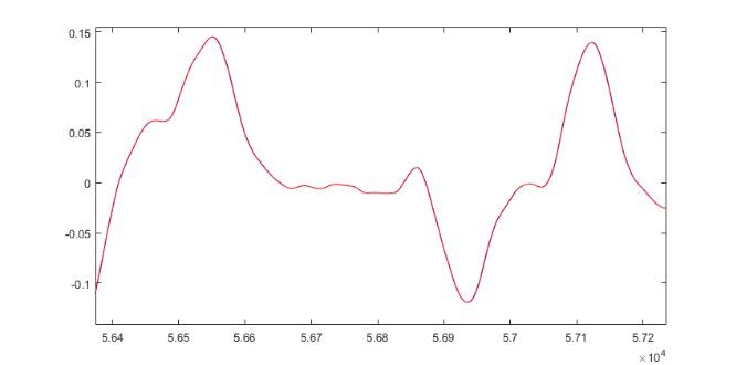 O domínio do tempo será exibido para um sinal de áudio extraído de uma música encontrada no YouTube — Raminchuvarevaru em Raaga Suposhini tocada por Mandolin U Rajesh [2]. As duas formas de onda gravadas com os cabos Lumix e Ataudio estão estreitamente alinhadas e visualmente sobrepostas, conforme ilustrado na figura 4. A duração do áudio foi de aproximadamente 0,681 segundos, gravado com taxa de amostragem de 192 kHz e profundidade de bits de 24 bits. A diferença de tensão entre os dois cabos foi calculada nesta seção, no domínio do tempo. Na Figura 5 há uma série de zooms para visualizar a pequena diferença na intensidade do sinal.