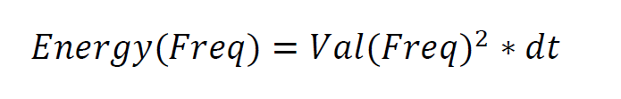 A energia, para cada frequência, é calculada para cada cabo com a equação (5), e dt é o inverso da taxa de amostragem que é de 52,08 micros segundos.