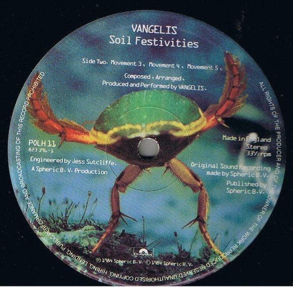 Acho que, de todos os discos dele, Soil Festivities é, inclusive, o mais atmosférico, se encaixando bastante na categoria Ambient de música eletrônica – porém muito mais orgânico que a maioria das obras já feitas nesse subgênero. É, também, facilmente, um dos discos mais bem gravados do Vangelis – tanto que até o vinil nacional e o CD são bem gravados! rs…